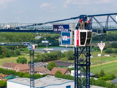 This summer, we delivered and assembled two Wolff 7534.16 tower cranes at the VDL De Meeuw site, located along the A12 in Willebroek. Both cranes were delivered in their corporate style colors.