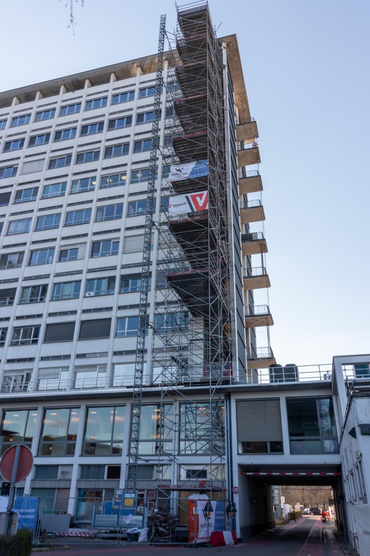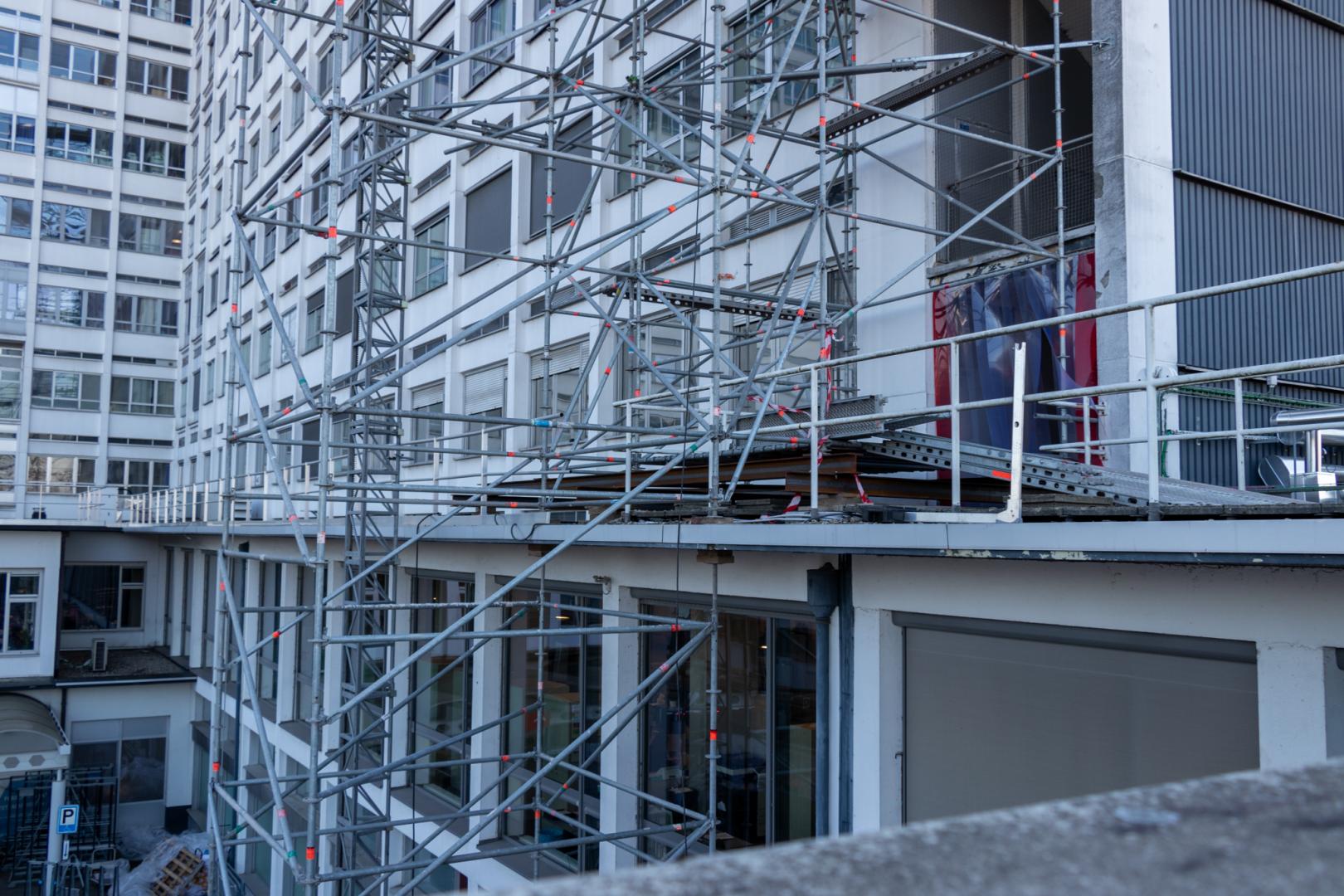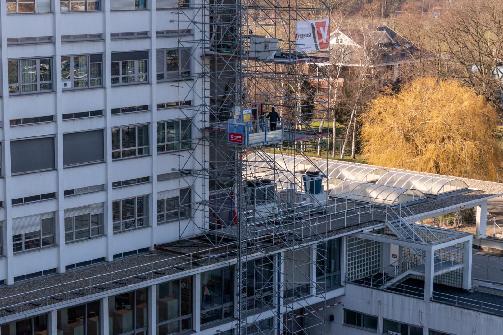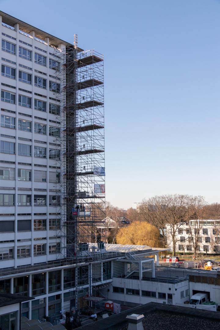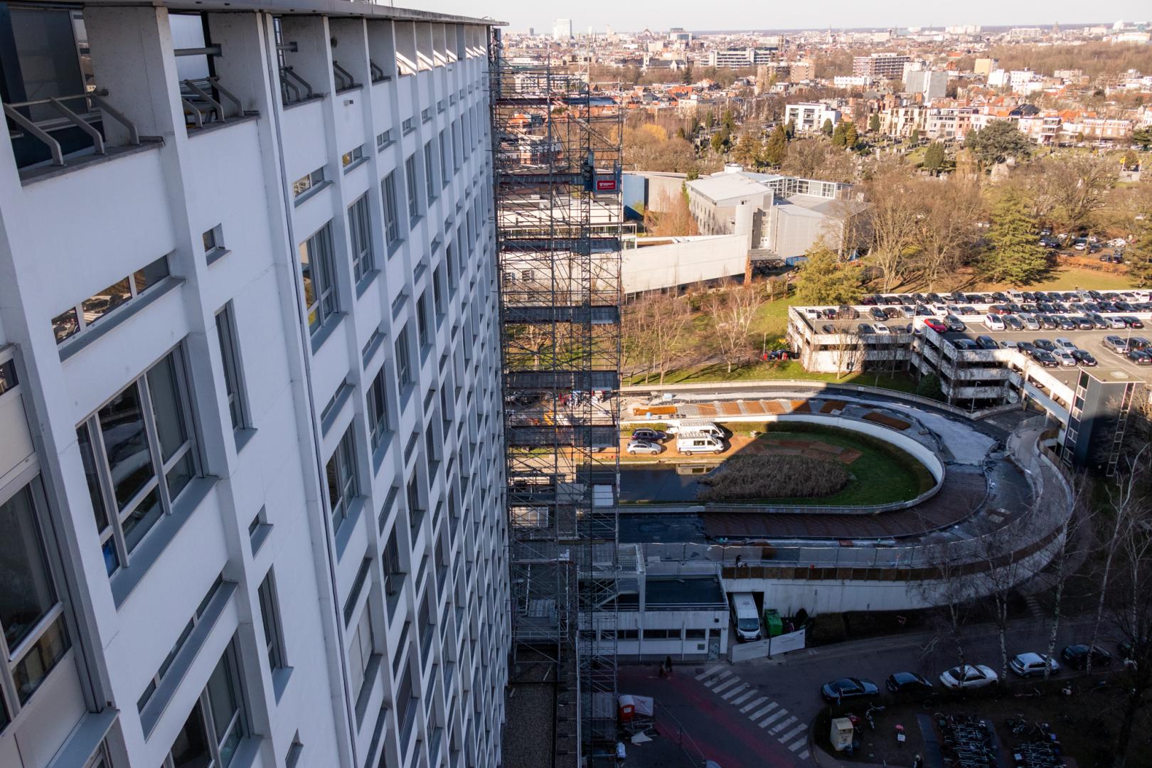 Notre client Wycotec travaille actuellement à la rénovation de la façade du ZNA Middelheim à Anvers et Verhelst Machines offre le soutien nécessaire. Pour un transport vertical aisé, un monte-charge de chantier Geda 1200 Z/ZP a été loué. Cependant, la tâche n’était pas simple, car la façade ne s'élève pas à la verticale.