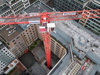 Verhelst Machines a récemment achevé un projet ambitieux pour Algemene Bouw Maes à Bruxelles. Nous avons réussi à installer une grue à tour 7032 Wolff au cœur du quartier européen de la ville. La grue a une hauteur sous crochet de 65,9 mètres et une longueur de flèche de 45 mètres, et devait être placée à travers un bâtiment existant.