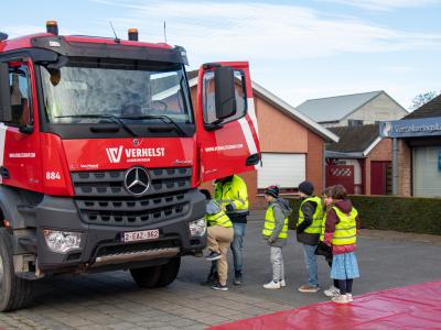 Leerlingen van de basisschool in Baliebrugge kregen vandaag een onvergetelijke les over de dode hoek bij vrachtwagens en machines. Via een interactieve sessie in de klas en een praktische demonstratie met een echte vrachtwagen en kraan maakten we hen bewust van de gevaren bij de werkzaamheden vlak voor hun school. Hoewel alle veiligheidsmaatregelen in acht worden genomen, is preventief bewustmaken altijd nuttig. Als extraatje ontvingen de kinderen een stoer fluovestje van onze beiren.