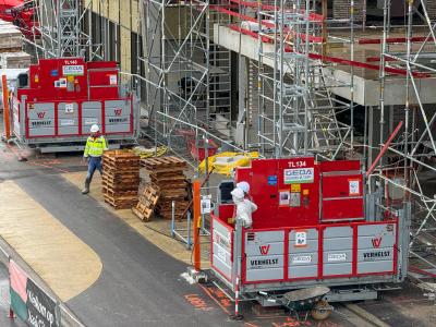 Voor de werf van het stadsontwikkelingsproject Kaai City in Kortrijk leverde Verhelst Machines twee GEDA 2500 Z/ZP transportplatformen aan hoofdaannemer Artes. Deze robuuste en beproefde liften bieden een efficiënte en veilige oplossing voor het verticaal transport van zowel materialen als personeel op de site.