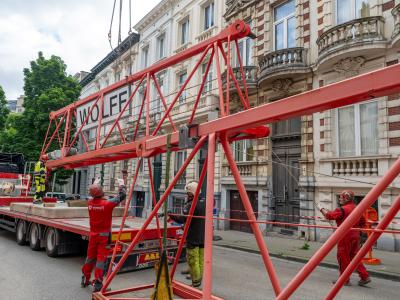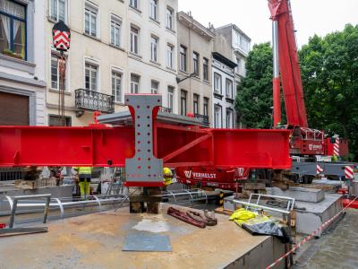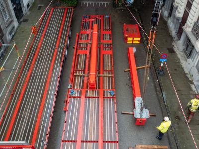 De locatie van de kraan was een belangrijke factor in dit project. De Belliardstraat mocht niet afgesloten worden voor de montage van deze kraan. Daarom moest alles in de Pascalestraat gebeuren. Om het doorgaand verkeer te garanderen, werd ervoor gekozen om de kraan op een portaal te plaatsen.