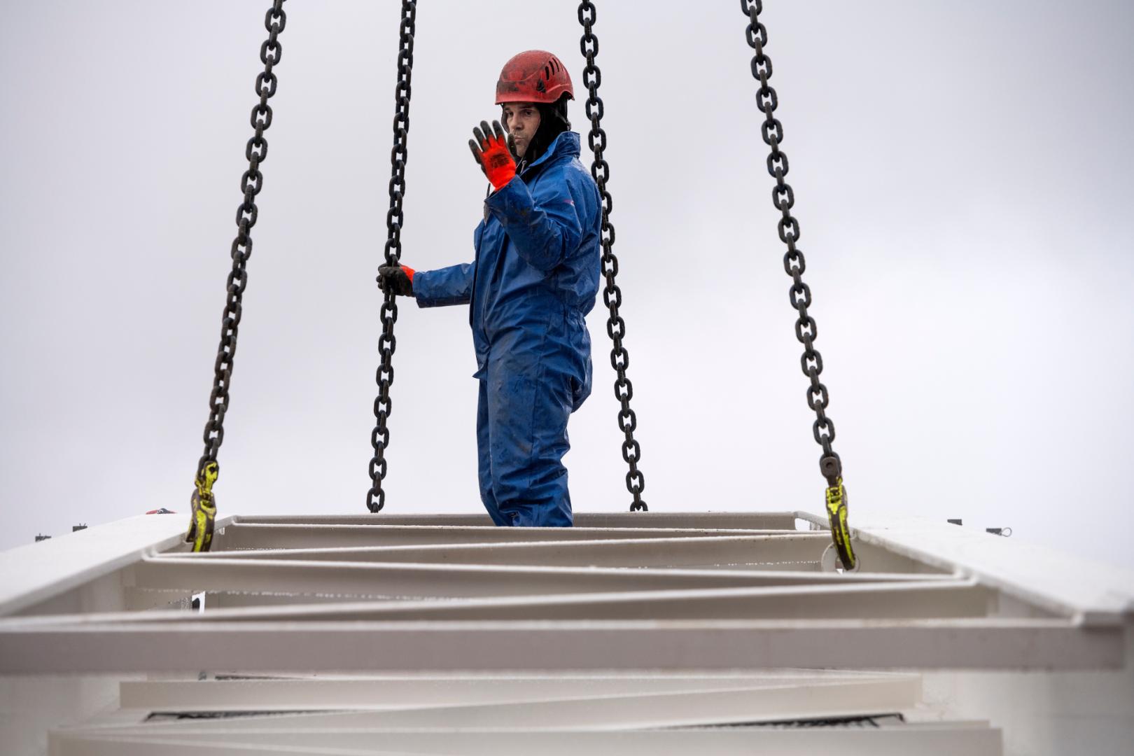 Montage van een Wolff 7534 op de werf van Hooyberghs in Antwerpen Nieuw zuid. Terug naar overzicht A realization of