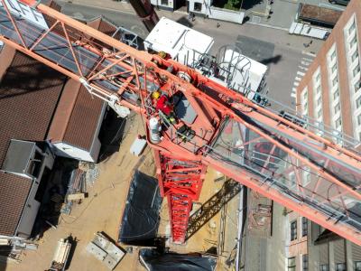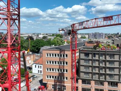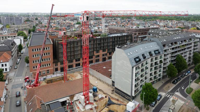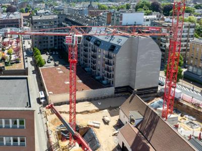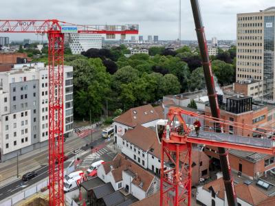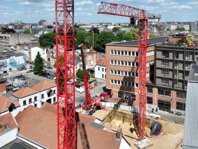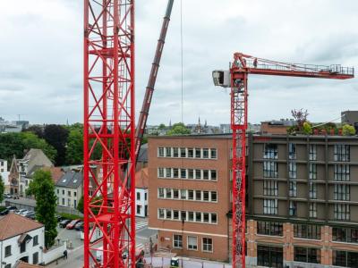 Recent voerden we voor Hooyberghs Algemene Bouwonderneming, een onderdeel van B&R Bouwgroep, de montage uit van twee torenkranen op hun werf De Koninck in Klein Berchem. Deze werf maakt deel uit van een ambitieus stadsontwikkelingsproject dat de buurt rond de historische stadsbrouwerij De Koninck transformeert tot een aantrekkelijke, groene woonomgeving met aandacht voor ambacht en beleving.